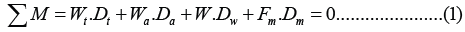Human Factor Engineering plays a crucial role in practical applications. As shown in Figure 1, a mechanics analysis of a person with lumbar flexion to pick up an object, where W is the weight of the object, Wa is the weight of the arms, Wt is the weight of the torso (head, neck), Fm is the tension of the psoas muscles to maintain body balance. According to Newton’s First Law, the sum of the moments on an equivalent body should be zero. Therefore, summing the moments at the black spot, we have:
