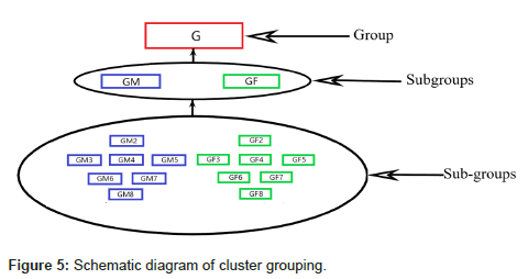 Grouping: Using granular computing, the main Group (G) is divided into subgroups by gender and age, resulting in 14 sub-groups: GM2-GM8 for males and GF2-GF8 for females, each with 100 samples as in Figure 5.