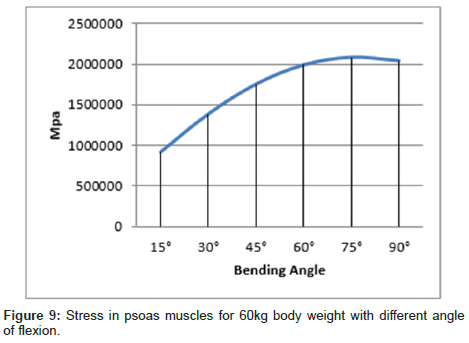 Figure 9: Stress in psoas muscles for 60kg body weight with different angle of flexion.