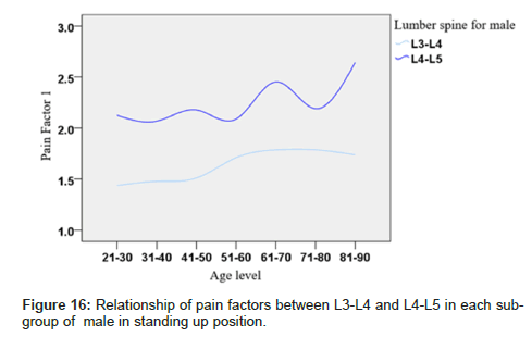 Figure 16: Relationship of pain factors between L3-L4 and L4-L5 in each subgroup of male in standing up position.