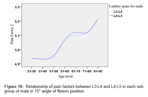Figure 18: Relationship of pain factors between L3-L4 and L4-L5 in each subgroup of male in 15° angle of flexion position.