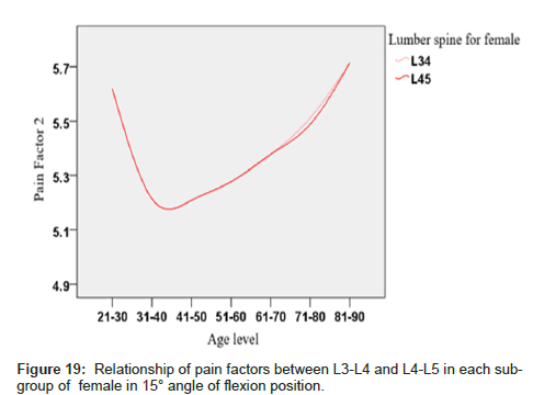 Figure 19: Relationship of pain factors between L3-L4 and L4-L5 in each subgroup of female in 15° angle of flexion position.