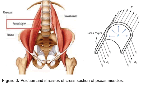 Longitudinal stress (σi) is then induced in the psoas muscles which can be approximated by using the concept of Hoop stress (σP).