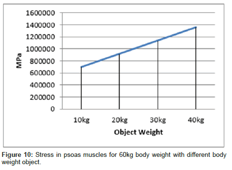 Figure 10: Stress in psoas muscles for 60kg body weight with different body weight object.